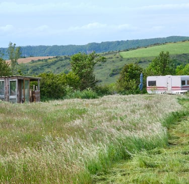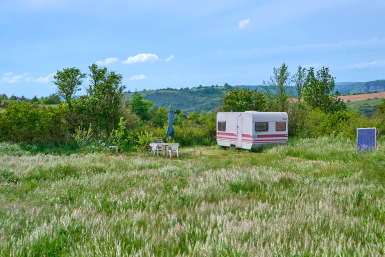 Notre caravane, isolée dans le champs