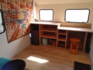 Tout confort, grand lit, bureau, électricité solaire.