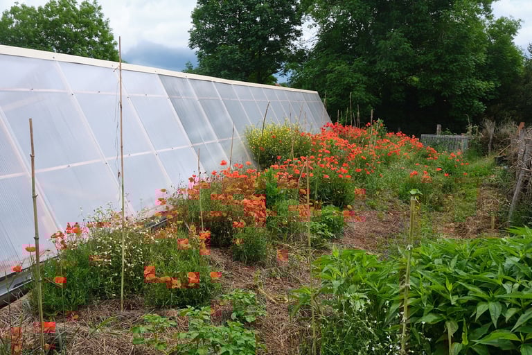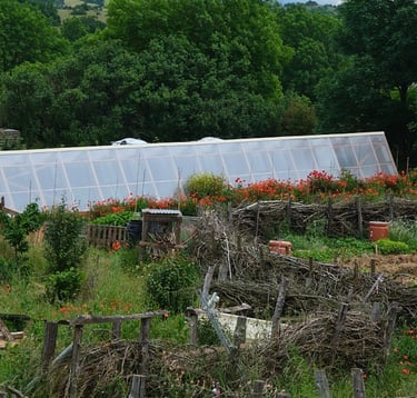 Une serre semi enterrée, c'est pour nous l'occasion de cumuler plusieurs fonctions :