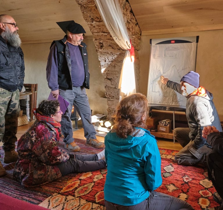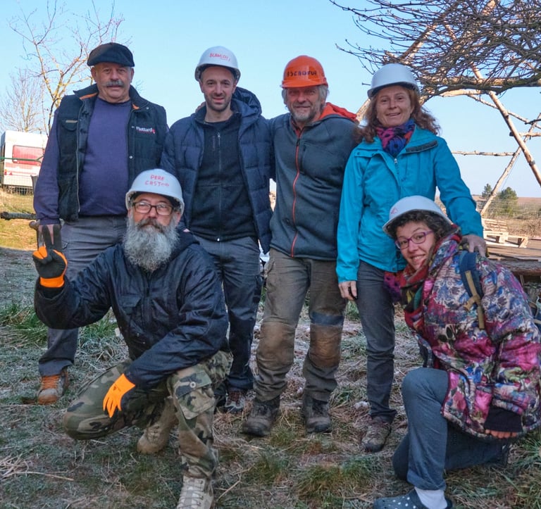 Malgré les 4 saisons (soleil, neige, pluie, vent et froid) qui ont traversé les 3 semaines de chantier, tous étaient quotidiennement à fond et enthousiastes.